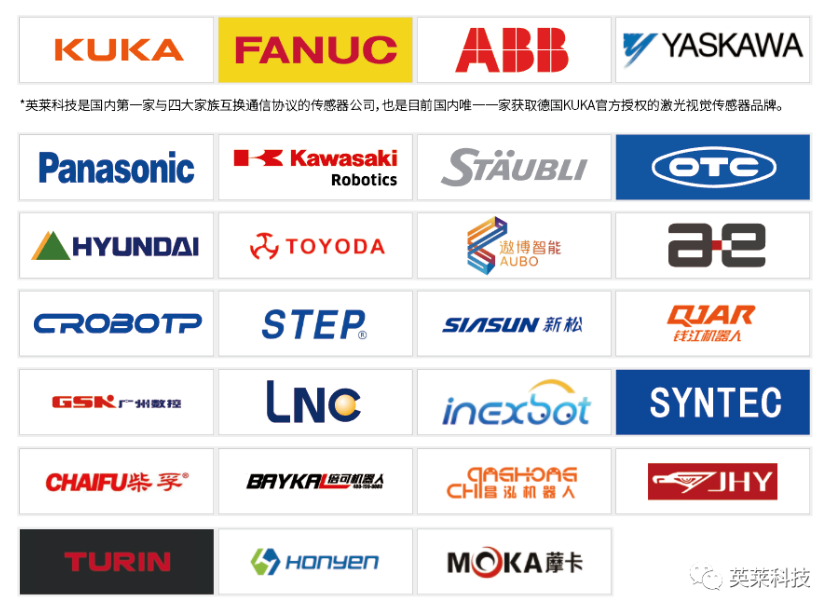 ?目前,英萊激光視覺焊縫跟蹤系統,已適配近40款機器人品牌,產品可與機器人進行無縫對接,即插即用,無需二次開發,更無需復雜配置。